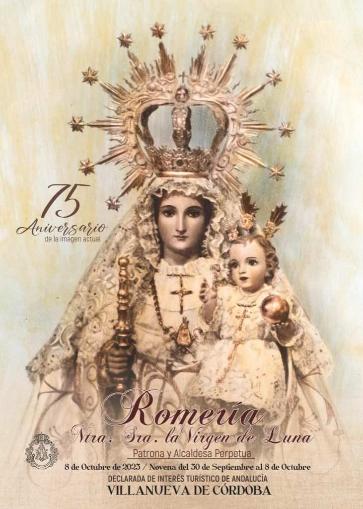 La Cofradía-Hermandad de la Virgen de Luna ha querido, en este 75 aniversario, recordar la imagen original de Nuestra Señora la Virgen de Luna con este cartel. Es una imagen de la Virgen de Luna, antes de ninguna restauración, que pertenece a un cuadro antiguo que fue donado a un cofrade por una devota que lo guardaba en su domicilio durante muchos años…