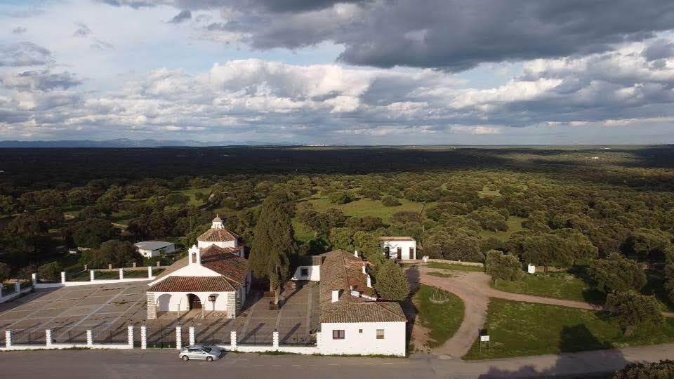 La ermita se encuentra en el corazón de la dehesa de la Jara, en el quinto de Navarredonda, a dos leguas, unos once kilómetros de Villanueva. El templo, de piedra berroqueña, es de planta cuadrangular, midiendo en conjunto 14 x 15’50 metros, y el camerino 7’50 x 6’50 metros. Tiene tres naves separadas entre sí por tres arcos sobre columnas de granito. La cubierta de la iglesia es a dos aguas, y el presbiterio tiene una cúpula con linterna. La entrada principal se halla mirando al mediodía, y tiene una portada formada por tres arcos frontales y uno a cada lado. El presbiterio está elevado sobre el resto de la ermita por estar construido sobre una gran masa rocosa visible desde el exterior. La sacristía se encuentra al Oeste del camerino. En 1936 fueron destruidos un cuadro representando a San Martín y las imágenes de Santa Lucía, San Diego y Aurora, obras del siglo XVIII. En la actualidad las imágenes de la virgen y un Cristo crucificado presiden desde el presbiterio; las de San José, Corazón de Jesús y Santa Lucía están en el altar de la derecha, y San Diego a la izquierda.