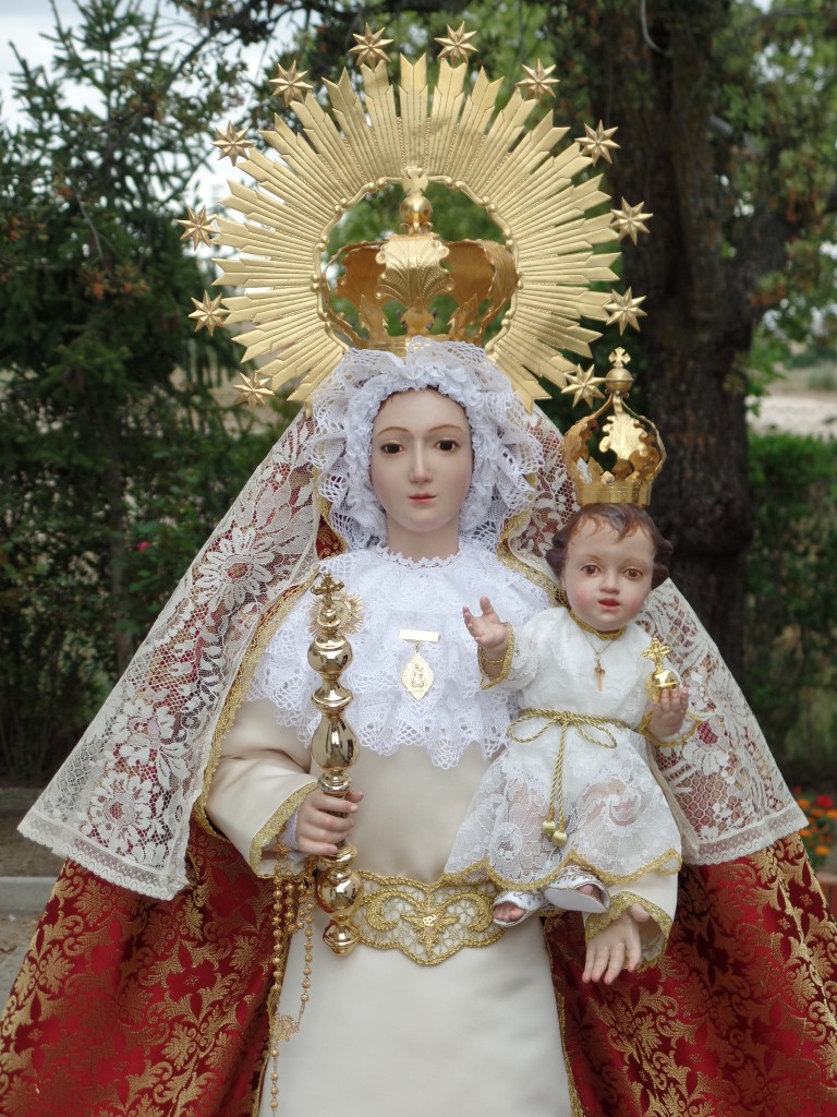 La imagen que actualmente procesiona el día de la Romería se la regaló a esta Hermandad la Madre Dª. Carmen Cañuelo Herruzo, General de las Obreras de Villanueva, hija de la Madre María Jesús Herruzo fundadora de dicha Orden Religiosa. Esta imagen, propiedad de la Madre Dª. Carmen Cañuelo, estaba en un desván de la casa de Villanueva. Como estaba bastante deteriorada se llevó a Sevilla para su restauración. La Madre Dª. Carmen también nos regaló la campana que está en la ermita.