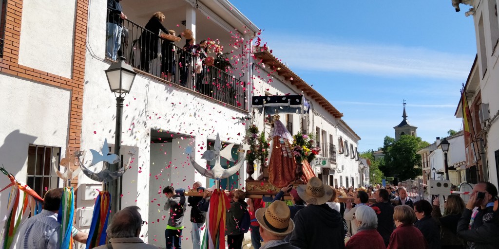 La Romería va encabezada por bandera y cinco Hermanos Mayores que portan bastón y alabardas y, la imagen de la Virgen va acompañada por autoridades de Cubas de la Sagra y Villanueva de Córdoba, Junta Directiva, romeros y devotos de la Virgen de Luna y por la Banda de Música de Villanueva.